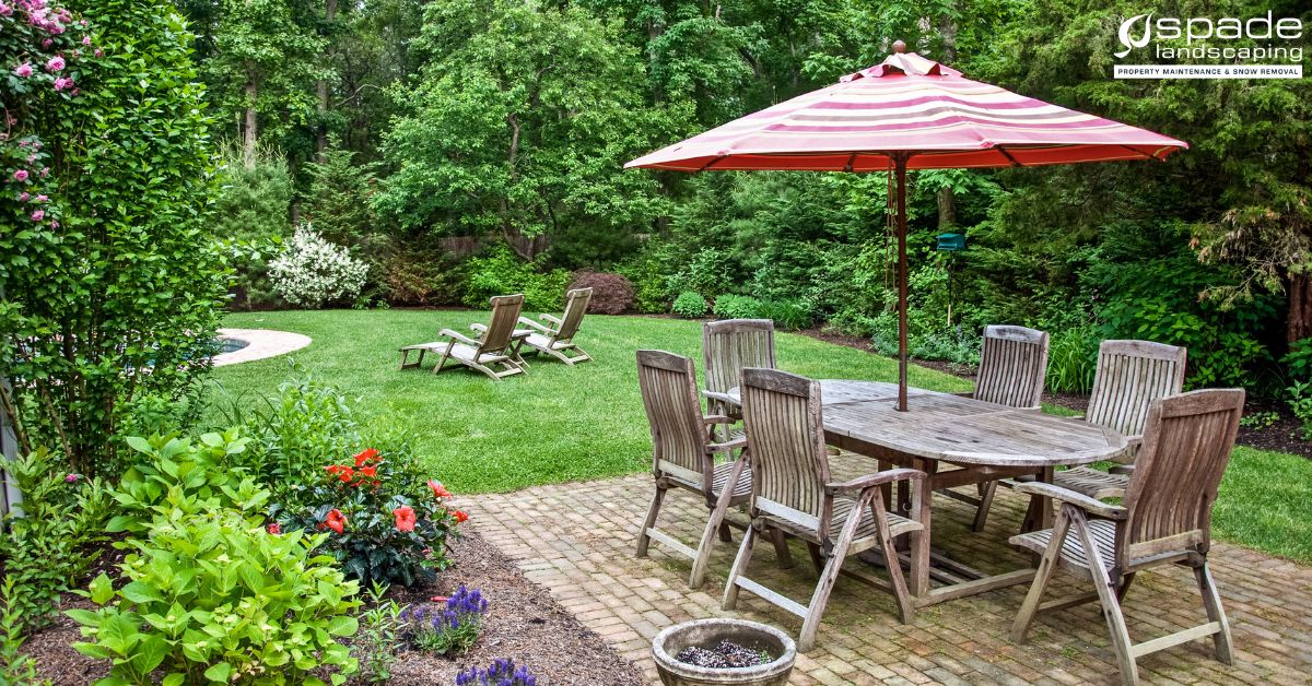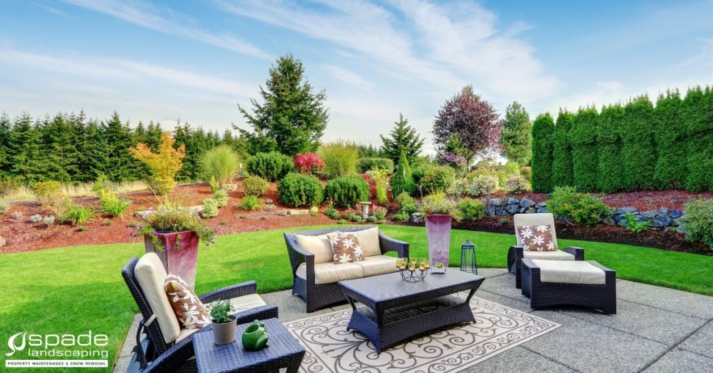 backyard with a patio and green grass - Spade Landscaping residential landscaping servicesCommon Landscaping Mistakes to Avoid