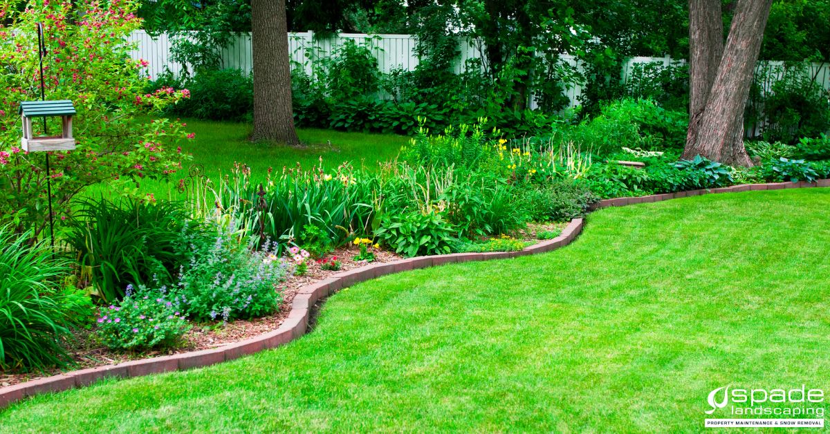 backyard with a plant bed with curved pavers - Spade Landscaping residential landscaping servicesThe Benefits of Hiring a Professional Landscaping Service